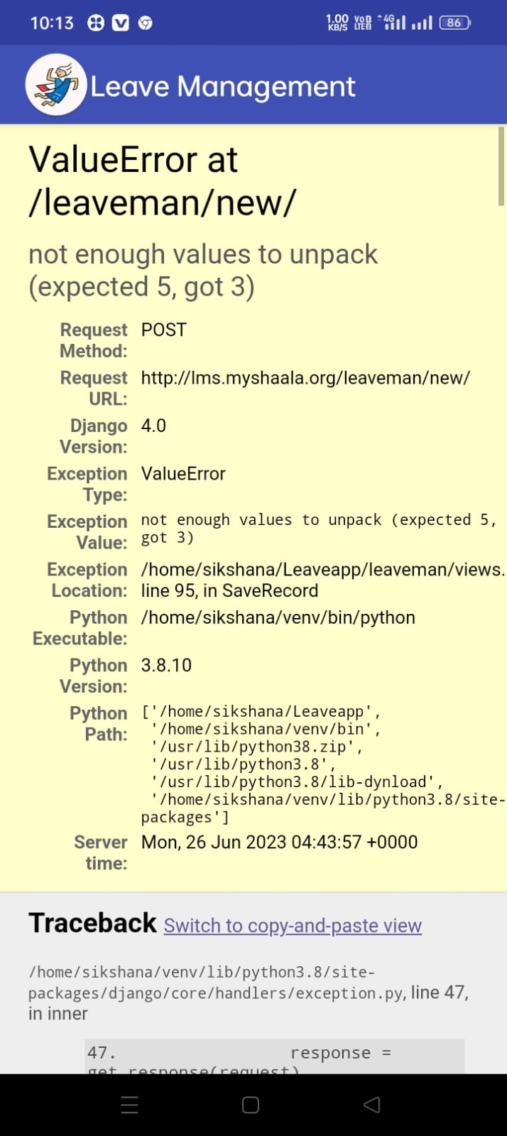 Incubator Chikkaballapura block Chaithra M ( 01149 ) Mentor leave dashboard is showing an error. Please find the below-attached screenshot and resolved the issue.